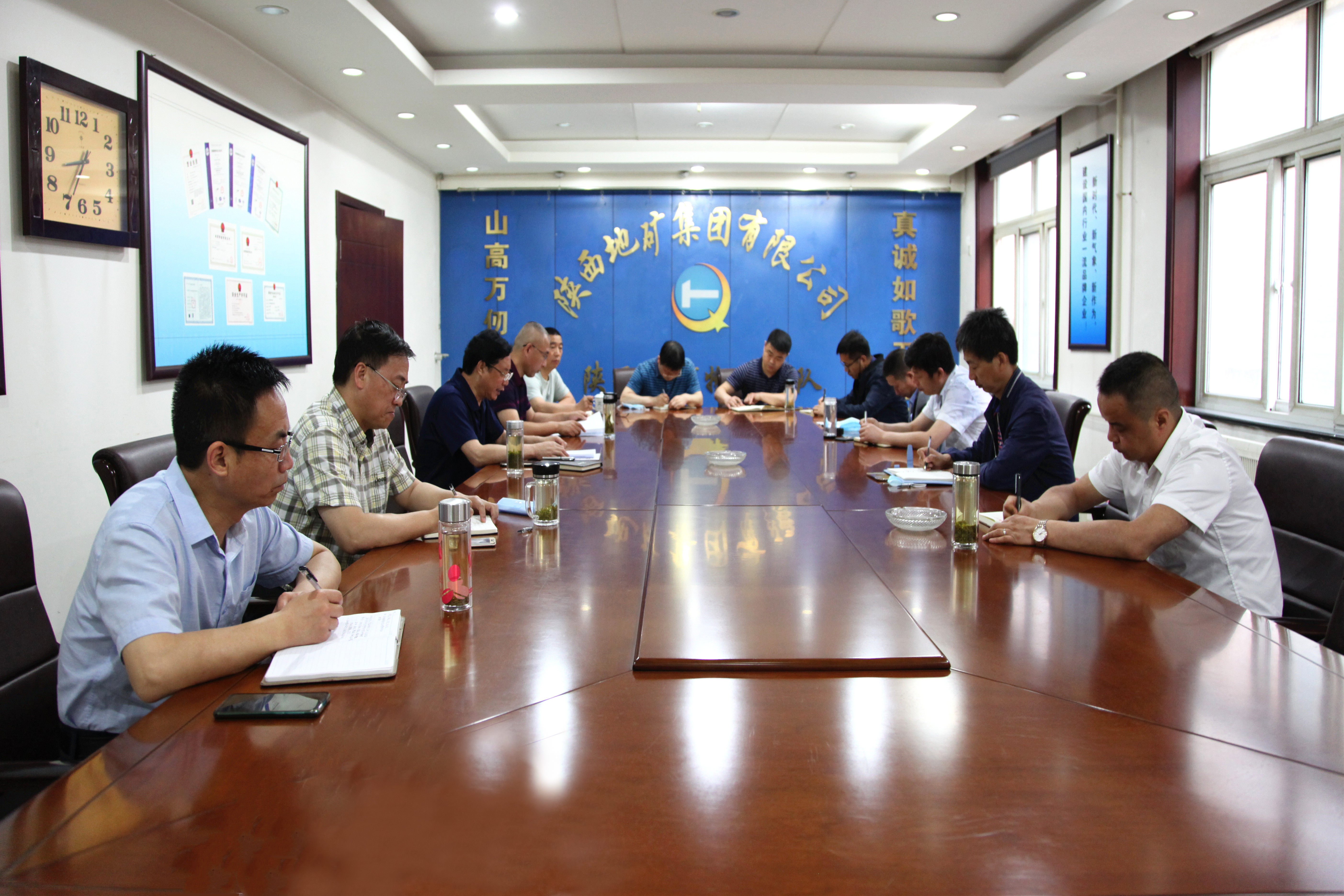 ??? 5月7日上午,物化探隊組織召開專題學習會議,學習習近平總書記來陜考察重要講話重要指示精神,學習胡和平同志在省委常委會(擴大)會議上的講話精神。公司黨委書記、執行董事、總經理王新坪主持會議。班子成員及各支部書記參加會議。