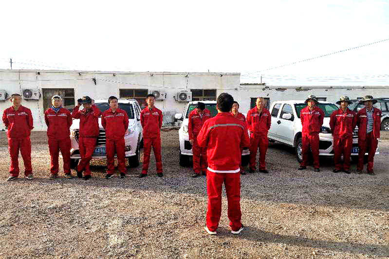 ??? “銀額盆地南部地區(qū)區(qū)域地球物理調(diào)查--大地電磁測量”項目是中國人民武裝警察部隊黃金地質(zhì)研究所公開招標(biāo)的區(qū)域地球物理調(diào)查項目。本項目工作區(qū)跨度大,加之沙漠戈壁干燥、多風(fēng)、少雨,工作環(huán)境十分惡劣,現(xiàn)又正值酷暑,項目部成員不畏風(fēng)沙肆虐,不懼酷暑炙烤,早出晚歸,突然席卷的狂風(fēng)瞬間黃沙漫天,迷了眼;烈日當(dāng)頭,揮汗如雨,就算這樣,晚上回到營地,由于用水緊張,項目部成員們也不敢暢快淋漓的洗個澡,沖洗掉一天的疲憊,只能端一盆水,大家輪流擦擦臉上被黃沙汗水勾勒條條曲線。盡管這樣這群剛?cè)鲱^的小伙們卻從來沒有放棄,為高質(zhì)量完成項目任務(wù)拼搏著、努力著、奮戰(zhàn)著......。