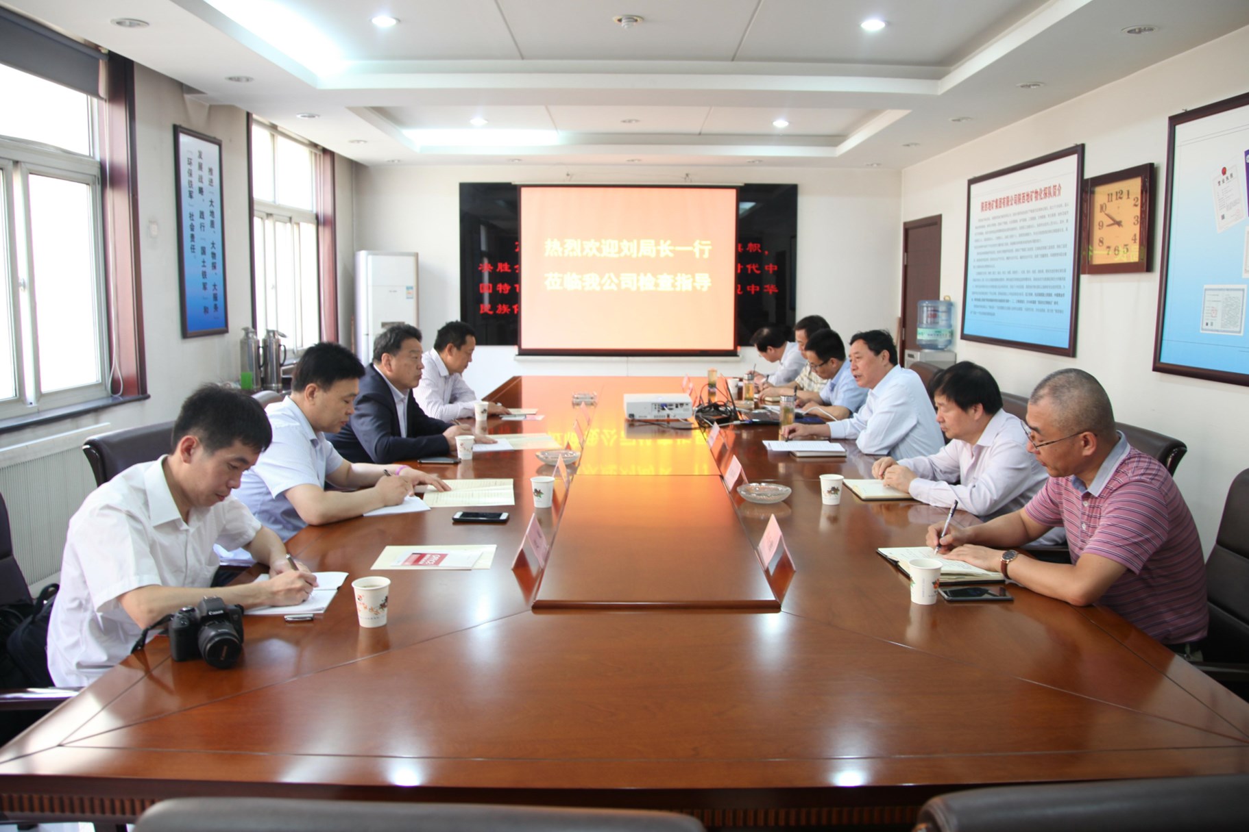 ? ? 公司黨委書記、執行董事、總理王新坪,首先向劉局長一行到來表示熱烈歡迎,并重點介紹了我公司“物化探+”發展思路、“三個物探”發展理念、技術實力、企業文化建設、以及創新發展的成功探索與實踐。