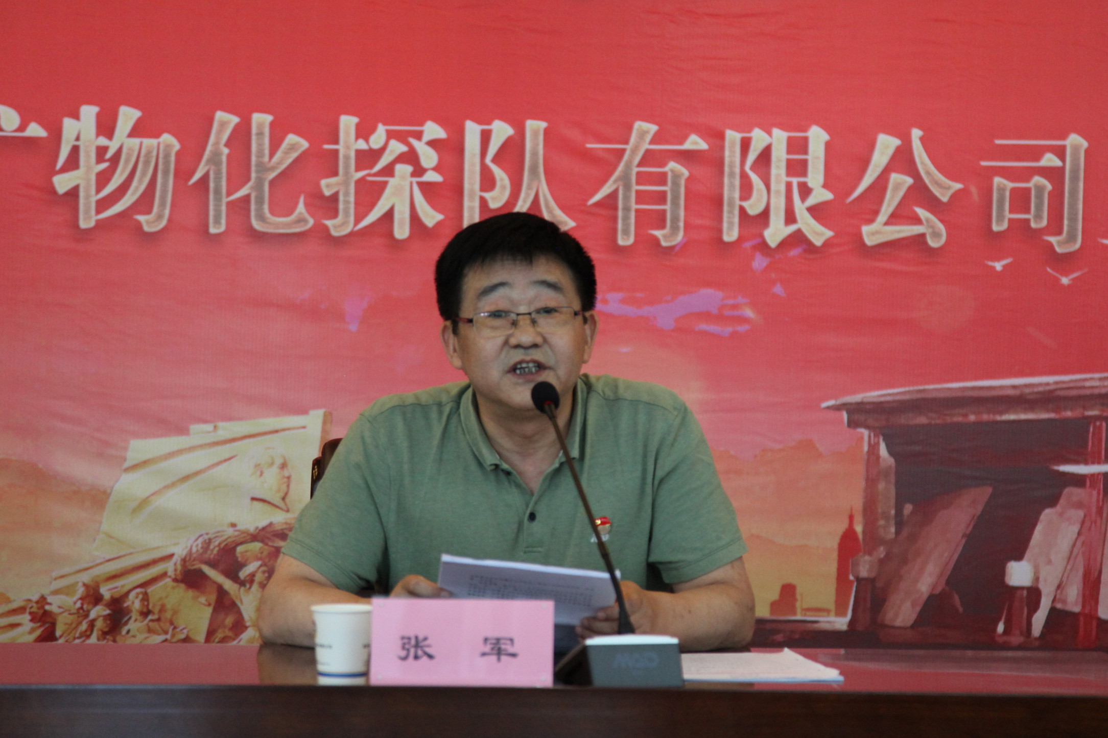 ? ? 為慶祝中國共產(chǎn)黨成立100周年,深入學(xué)習(xí)貫徹習(xí)近平新時代中國特色社會主義思想,進(jìn)一步推動黨史學(xué)習(xí)教育各項工作扎實開展,按照集團(tuán)公司黨委《黨史專題宣講暨深入調(diào)研講授專題黨課工作方案》要求,6月22日下午,集團(tuán)公司紀(jì)委書記、陜西省監(jiān)察委員會駐地地礦集團(tuán)監(jiān)察專員張軍同志深入物化探隊開展黨史專題宣講、調(diào)研并講授專題黨課。物化探隊領(lǐng)導(dǎo)班子成員、在隊部的全體職工60余人參加了宣講會。公司黨委書記、執(zhí)行董事、總經(jīng)理李新勝同志主持會議。